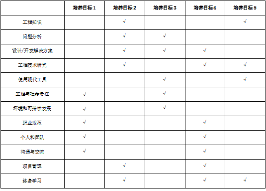 本专业毕业要求对培养目标的支撑关系如下表所示: