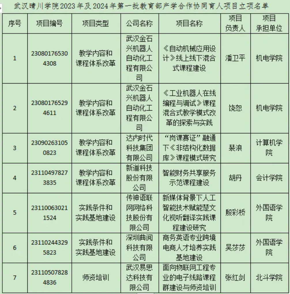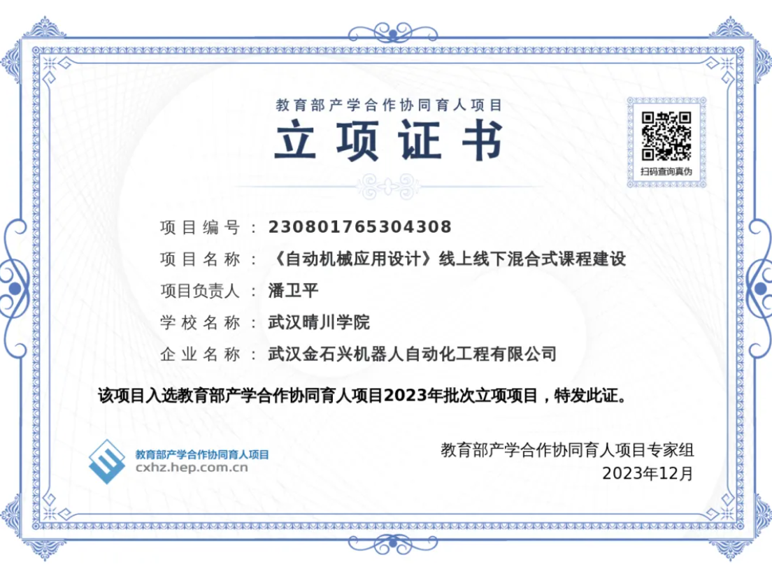 近年来,武汉晴川学院着力应用型人才培养,高度重视产学合作协同育人项目工作,并不断取得新进展。此次立项是我校锚定“三有三能型”(有家国情怀、有过硬本领、有责任担当,较强社会适应能力、创新创业能力、可持续发展能力)应用型人才培养目标,深化产教融合、校企合作,推进协同育人的重要体现,彰显了我校在产学研深度融合方面良好的发展态势。我校将以此为契机,根据《教育部产学合作协同育人项目管理办法》(教高厅〔2020〕1号)要求,以及《武汉晴川学院产学合作协同育人项目管理办法》(试行)(武汉晴川发规字〔2023〕2号)管理办法,加强对项目的指导和管理,推动项目负责人与相关企业加强联系,按照要求高质高效推进项目实施,保证项目顺利实施及结题。