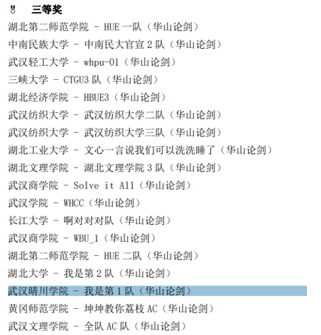 近日,第八届“中国高校计算机大赛-团体程序设计天梯赛”全国总决赛于4 月 22 日下午举行。来自全国 31 个省级行政区的 480 所高校组成的 1624 支队伍 16167 位参赛学生参加了三个小时的激烈角逐。我院岑煦东战队十名同学突破自我、努力拼搏,荣获湖北省(华山论剑)三等奖名次。