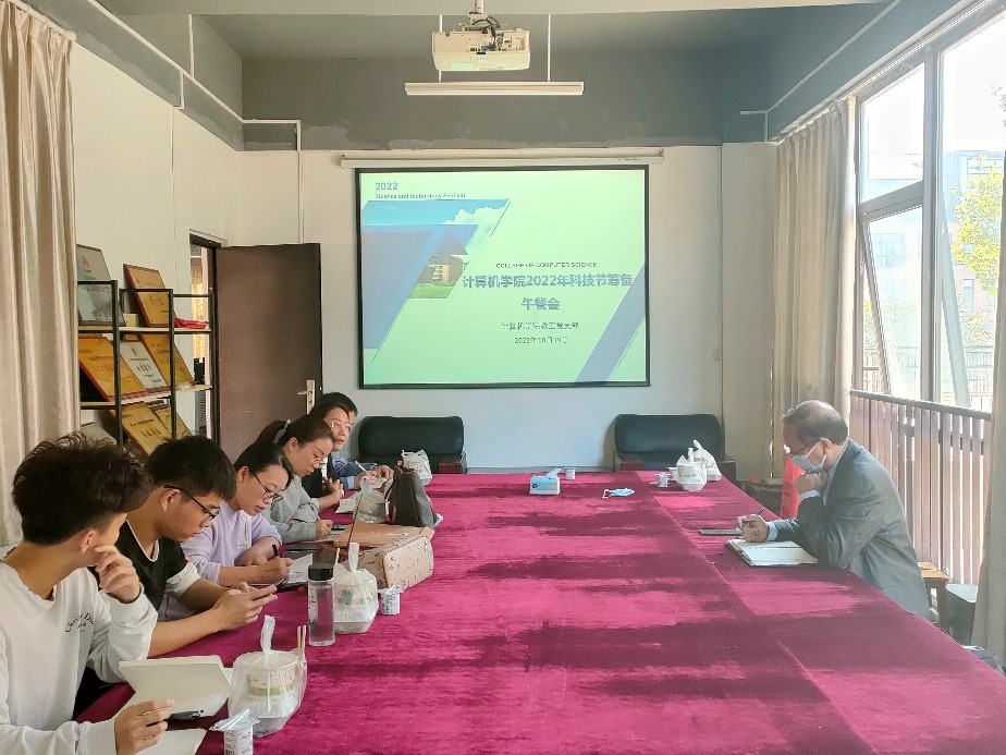 午餐会接近尾声时,黄院长表示,要加强老师教练组的参与度,让学生多参与,然后建立一个成果展示,把获奖的作品展示出来。另外科技节几大板块,图灵论坛,科研交流会,学科竞赛等主题要和二十大结合,在闭幕式上展示比赛成果。