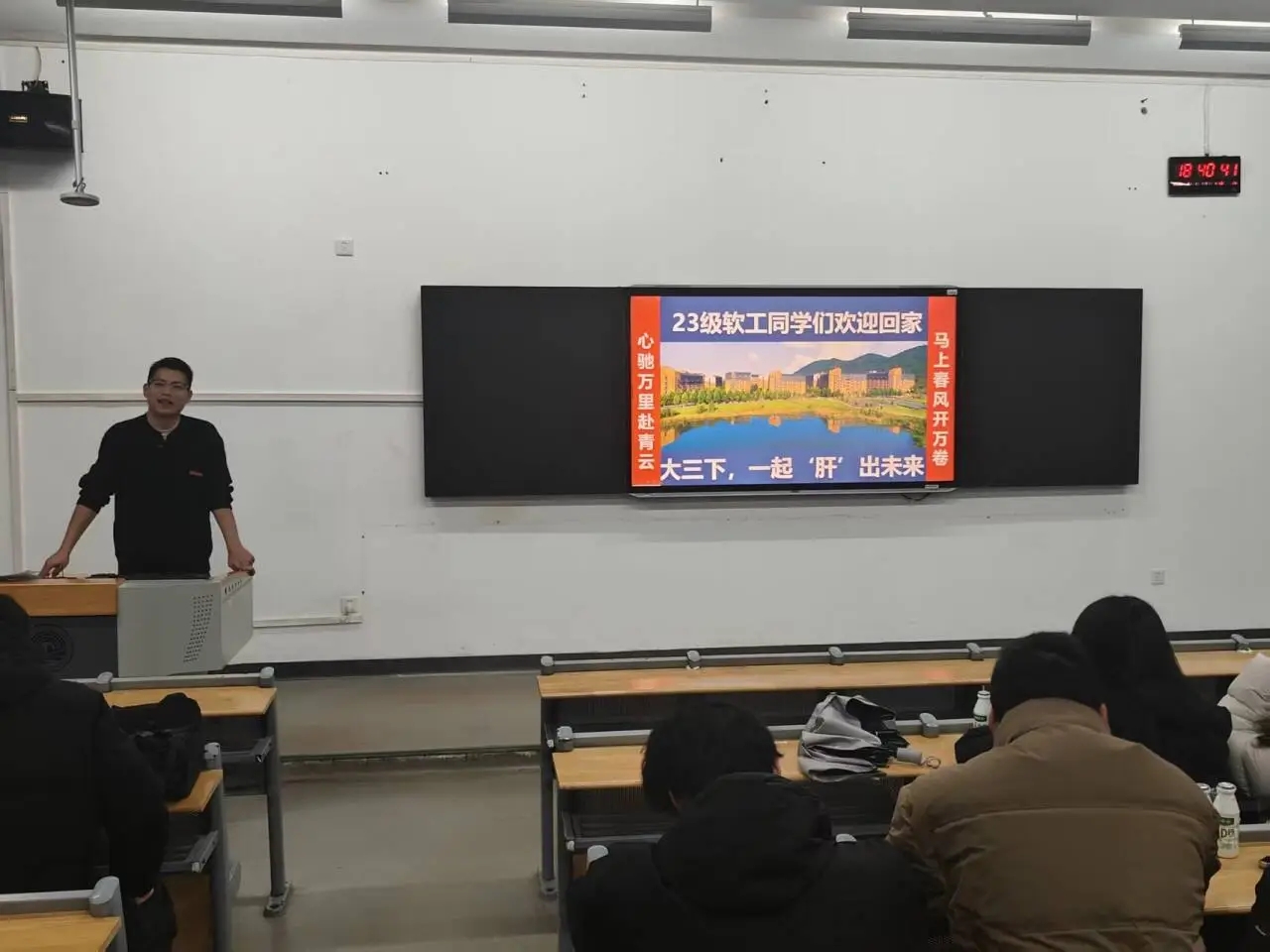 此次23级软工班庆新春主题活动,既是一场暖意满满的送福会,也是一次凝心聚力的动员会。一份AD钙奶承载着老师的关怀,一次成绩复盘明确了学习方向,一场主题交流凝聚了班级力量,为新学期班级学风建设与文化建设奠定了坚实基础。相信在余老师的带领下,23级软件工程班全体同学将以龙马精神为指引,策马扬鞭、笃行不怠,在专业学习的道路上逐梦前行,用青春与奋斗书写属于23级软工班的精彩篇章。