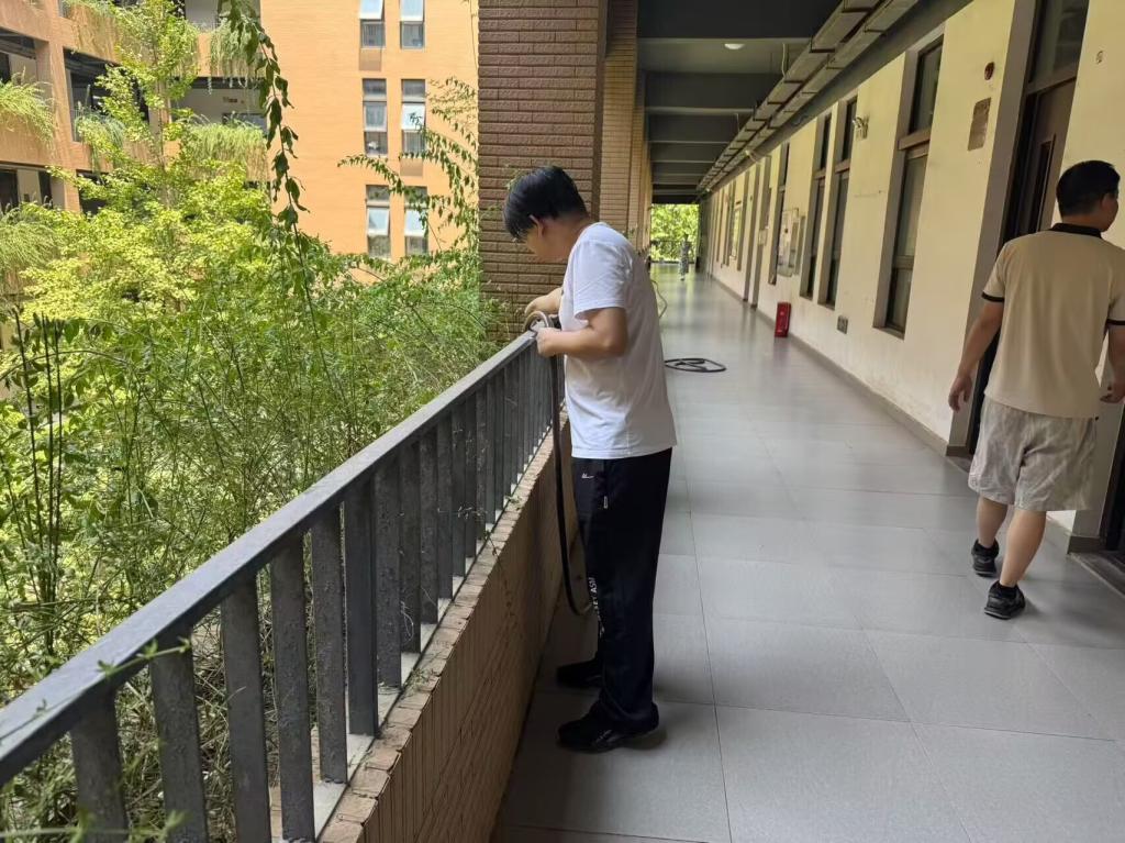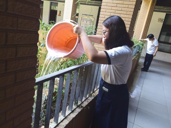 “党员干部就要走在前、干在先!”院长黄传河在劳动间隙表示,“校园环境是师生的‘第二课堂’,我们以‘党建+服务’模式带动全员参与,既能为学校节支创效,更能传递爱护环境的正能量。”汗水浸透了衣衫,但党员干部们始终坚守岗位,经过半小时的连续奋战,综1花坛的绿植全部完成浇灌,原本略显蔫萎的叶片重新舒展挺立。