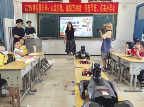 武汉晴川学院开云官方端网站登录入口党总支书记王天见重点阐述了强国行科技支教的核心内涵。他指出,教工支部以 “强国行” 专项行动为抓手,充分发挥党员教师在教学研究、科研管理方面的优势,将高校优质教育资源精准下沉至乡村。此次科技支教中,支部党员教师带领实践团携带机器狗、无人机等前沿智能设备走进小河口小学暑期托管班,通过现场操控演示 —— 机器狗完成人体跟随、舞蹈、俯卧撑等动作,无人机展示空中盘旋与航拍技巧,让孩子们近距离感受科技魅力,不少孩子像李晨跃、张子萱那样,对机器狗的优雅动作和跟随功能赞不绝口,眼中闪烁着对科学的向往。