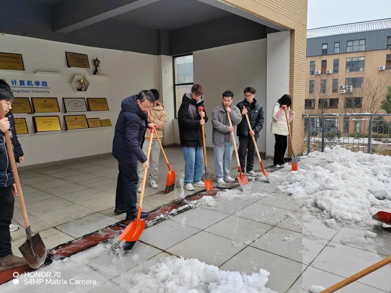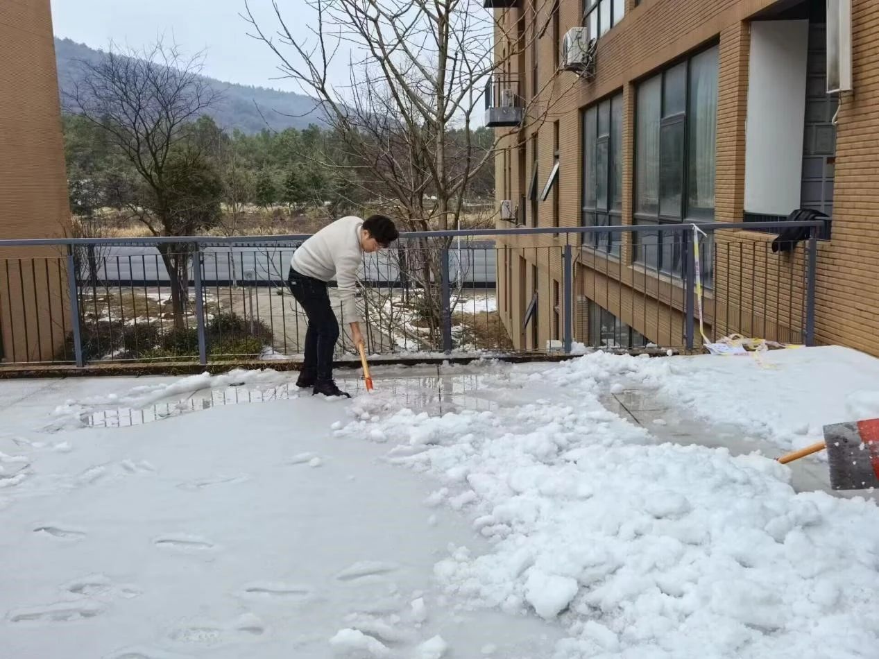 活动开始前,支部书记陈猛老师作动员词,“作为党员干部,我们不仅要在理论学习中体现先进性,更要在实际行动中彰显先锋模范作用。我们要率先垂范、不畏严寒,主动承担起清理积雪的重任,确保校园道路的安全畅通。”之后根据清理区域的具体情况,对参加活动的成员进行了科学合理的分组分工。陈老师亲自指导,将清理任务细化到每组、每人,充分体现了共产党员的团结协作精神。