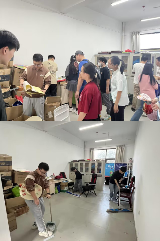 随后大家热火朝天的开始进行卫生打扫和整理工作。学员翁鑫同学表示,“劳动是光荣的,看着被我们整理的干干静静的会议室和物资室,我们感到很有成就感”。