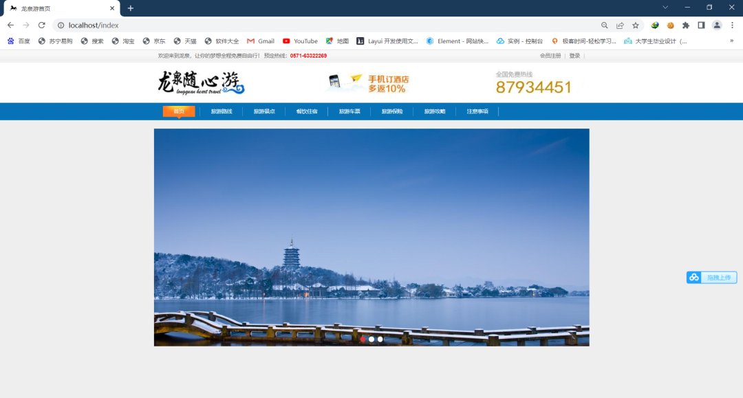 游前:游客可以通过龙泉随心游首页,“旅游路线”、“旅游景点”、“餐饮住宿”、“旅游保险”等平台功能木块,提前熟悉景点情况,规划好旅游线路。