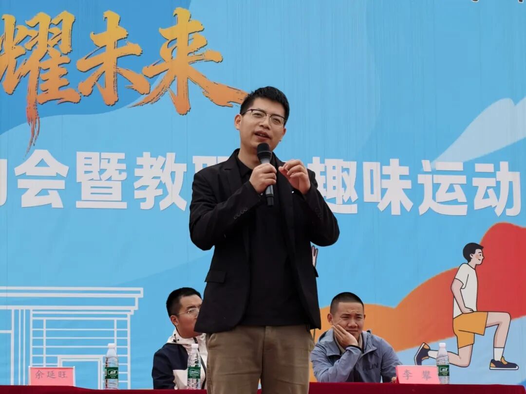 比赛环节圆满结束后,特邀余延旺老师上台讲话。余老师对各参赛班级的精彩表现给予充分肯定,赞扬了同学们展现出的团结协作、奋勇争先的体育精神,同时指出了各个班级的不足。余老师告诉我们,不要一直重复一个动作,各个班级舞蹈结束的太过突然,要活力一点,放开一点。